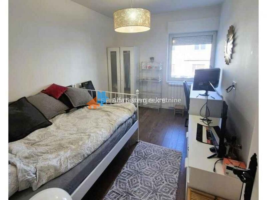 Izdaje se prostran, luksuzno opremljen četvorosoban stan u novogradnji, površine 100 m². Stan se nalazi u visokom prizemlju stambene zgrade, ali pruža osećaj samostalnog objekta, jer poseduje sopstveni ulaz, kapiju, alarmni sistem i video nadzor.