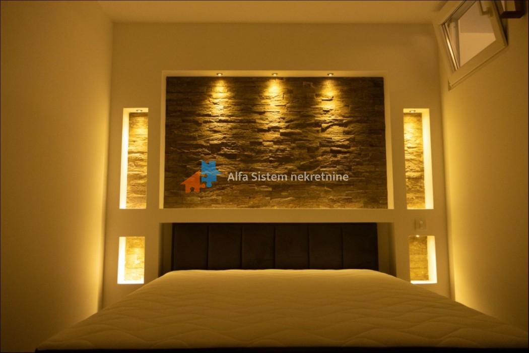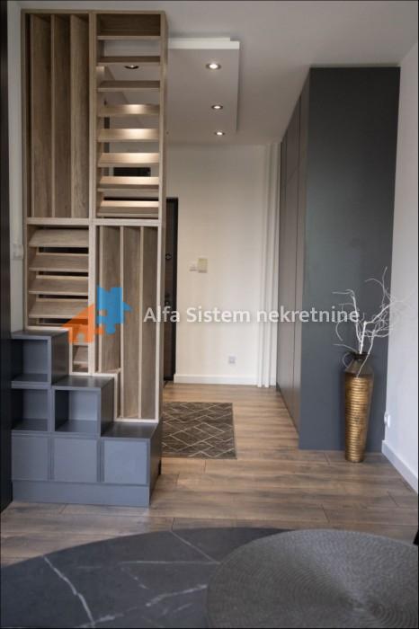 Kompletno je namešten novim nameštajem i uređajima, sa centralnim grejanjem i parkingom pored zgrade. U neposrednoj blizini nalaze se prodavnice, apoteke, pijaca, pošta, javni prevoz i Banjička šuma. Stan je odmah useljiv.