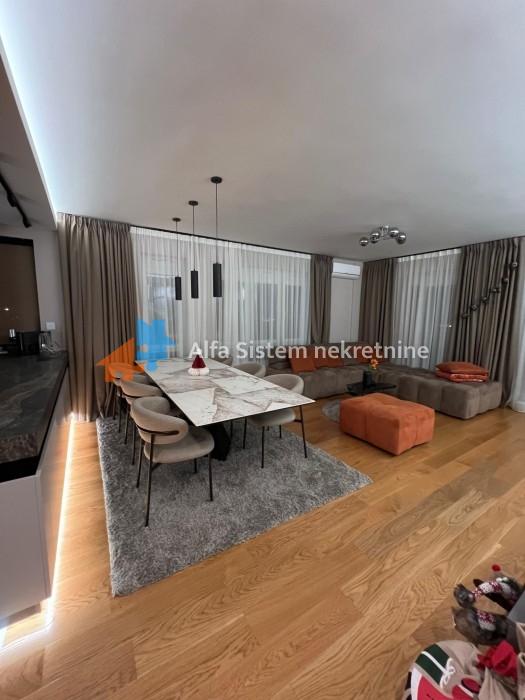 Struktura: Dnevni boravak sa trpezarijom i diskretno odvojenom kuhinjom, spavaća soba sa sopstvenim kupatilom, gostinjski toalet, hodnik, dve prostrane terase