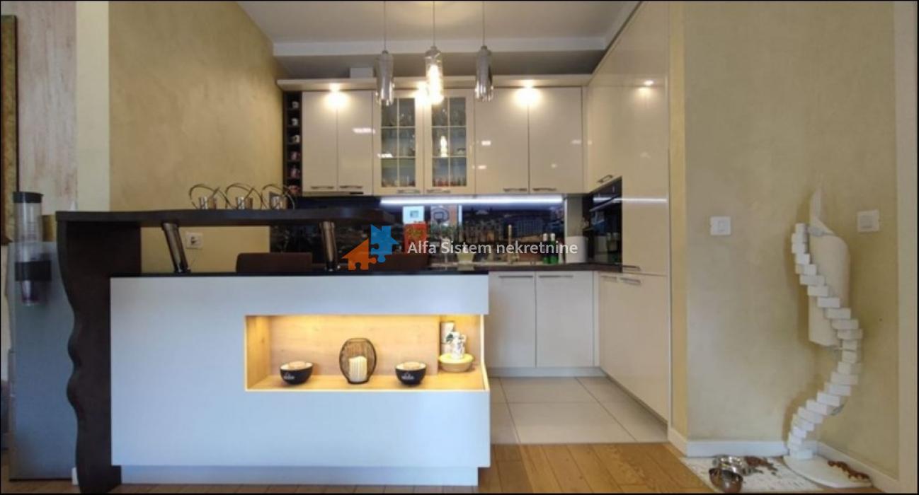 Prodaje se kompletno opremljen savremenim, pažljivo biranim nameštajem i tehnikom, što dodatno olakšava useljenje i smanjuje dodatna ulaganja. Privatna bašta, sa dva natkrivena kutka za odmor, pruža neprocenjivu dodatnu vrednost, idealna je za opuštanje ili boravak sa porodicom i prijateljima. Orijentacija ka unutrašnjem dvorištu garantuje mir i tišinu.